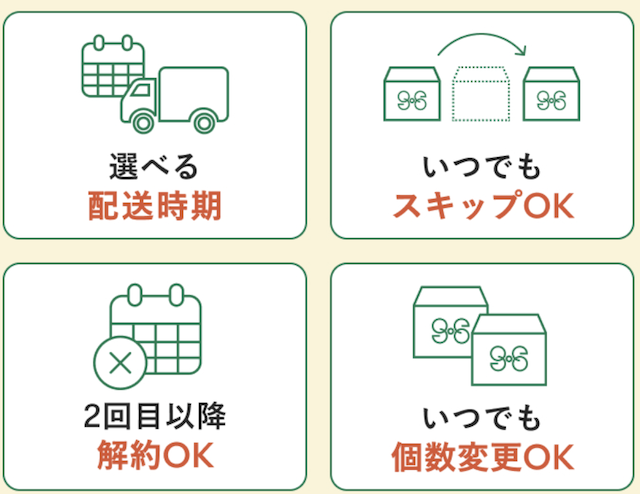 初回がお得な定期購入ですが、購入回数縛りなし、いつでも解約(キャンセル)をすることができます。