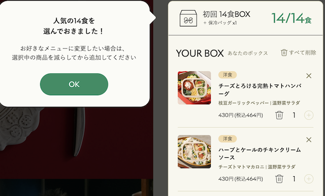 初回に頼めるメニューは、グリーンスプーン側で選んでくれているけど、