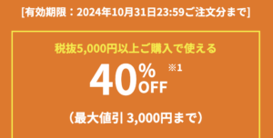 • 税抜5,000円以上 → 2,000円OFF(40%OFF相当)