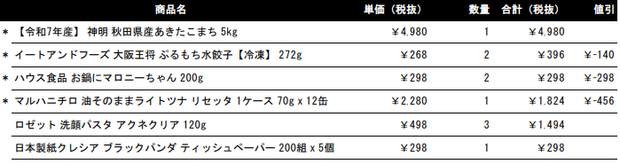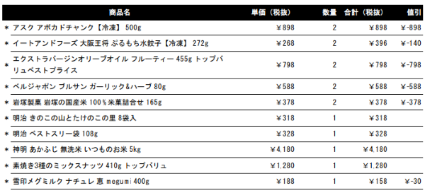 税抜7500円分購入すると、最大限割引が使えて、3,000円OFFになりました。