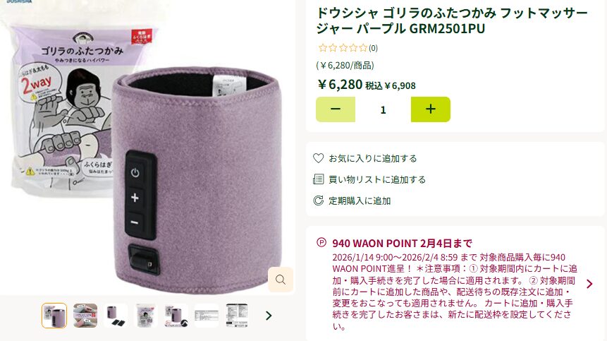 例えば、このゴリラのふたつかみ フットマッサージャーを購入しようとします。