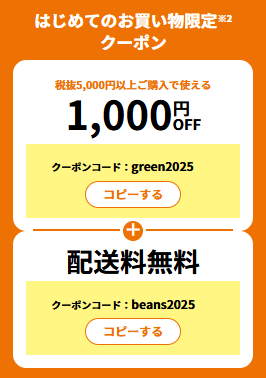 グリーンビーンズのクーポン【初回1000円OFFクーポンコード】